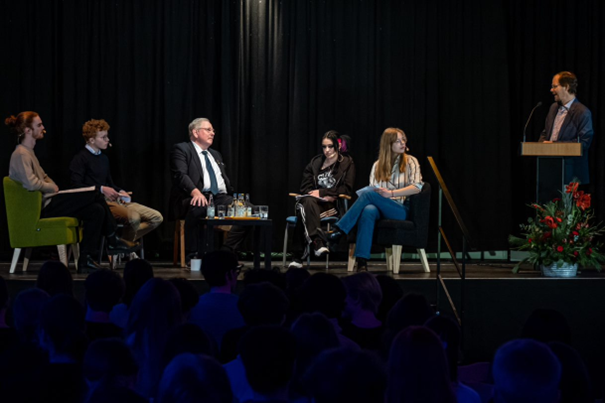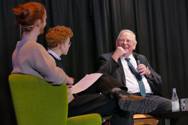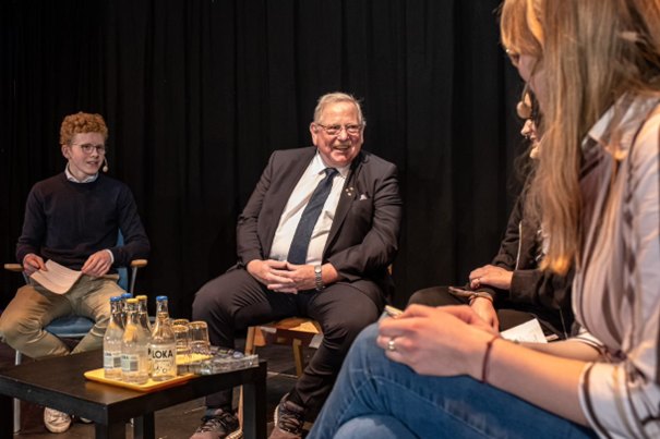 Anschließend beantwortete der Nobelpreisträger, und Direktor des Max-Planck-Instituts für extraterrestrische Physik in Garching bei München, mit seinen ausgeprägten Kenntnissen enthusiastische Fragen von den Moderatoren aus der elften Klasse zur Astrophysik. Beispielsweise, ob die Menschheit die Energie von Schwarzen Löchern nutzen könnte. Wir bekamen auch inspirierende Einblicke in sein Leben, zum Beispiel, warum er überhaupt Physiker wurde: Prof. Dr. Genzel hatte schon seit der Kindheit seinen Vater als Mentor, der ebenfalls von Beruf Physiker war. Als Jugendlicher war der heutige Nobelpreisträger jedoch auch ein erfolgreicher Speerwerfer, allerdings besiegelte eine Verletzung am Arm, die seine zukünftige sportliche Karriere verhinderte, seine Zukunft im Feld der Astrophysik. Eine Entwicklung, mit der er im Nachhinein sehr zufrieden ist.