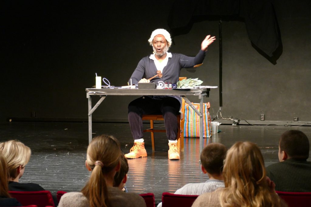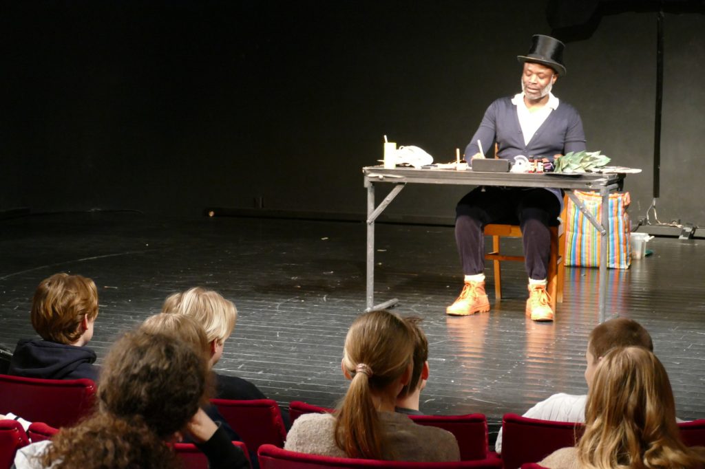 Um 8:10 Uhr gingen wir los – die meisten von uns, um ehrlich zu sein, nicht sehr motiviert. Nach einem etwa zwanzigminütigen Spaziergang erreichten wir das kleine Theater, wo einst der berühmte August Strindberg seine Vorträge abgehalten hat – daher der Name. Der Schauspieler begrüßte uns herzlich und erklärte erst noch kurz die Gründungsgeschichte des Theaters, ehe er wirklich anfing. Und als der Vortrag begann, waren wir wahrscheinlich alle sehr verblüfft. Wir hatten einen langen Monolog erwartet, doch was wir zu hören bekamen, war eigentlich viel mehr ein Dialog. Der Schauspieler stellte uns Fragen, integrierte seine Zuschauer in die Vorstellung und ermutigte uns, mitzudenken, nicht nur zuzuhören. Er gestaltete seinen Auftritt durch wechselnde Kostüme, Menschlichkeit und gute Witze abwechslungsreich und lebhaft. Ich glaube, wir waren alle fast ein wenig enttäuscht, als er geendet hat. Die Vorstellung hat mir persönlich sehr gut gefallen, und ich glaube, den meisten geht es genauso. Er hat zum Mitmachen und Mitdenken angeregt. Die Vorstellung ist definitiv sehenswert!