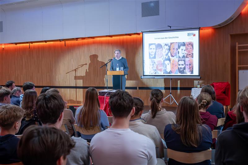 Am 18.02.2026 bekamen wir an der DSS einen Ehrengast, den Direktor des Holocaust- Denkmals der ermordeten Juden Europas in Berlin, Uwe Neumärker. Extra aus Berlin flog er ein, um bei uns ein Seminar über Demokratie und Zivilcourage in unserer heutigen Gesellschaft zu halten. Um 15 Uhr versammelten sich also die Schüler/innen der Oberstufe in der Aula, gespannt darauf, was uns erwarten würde.